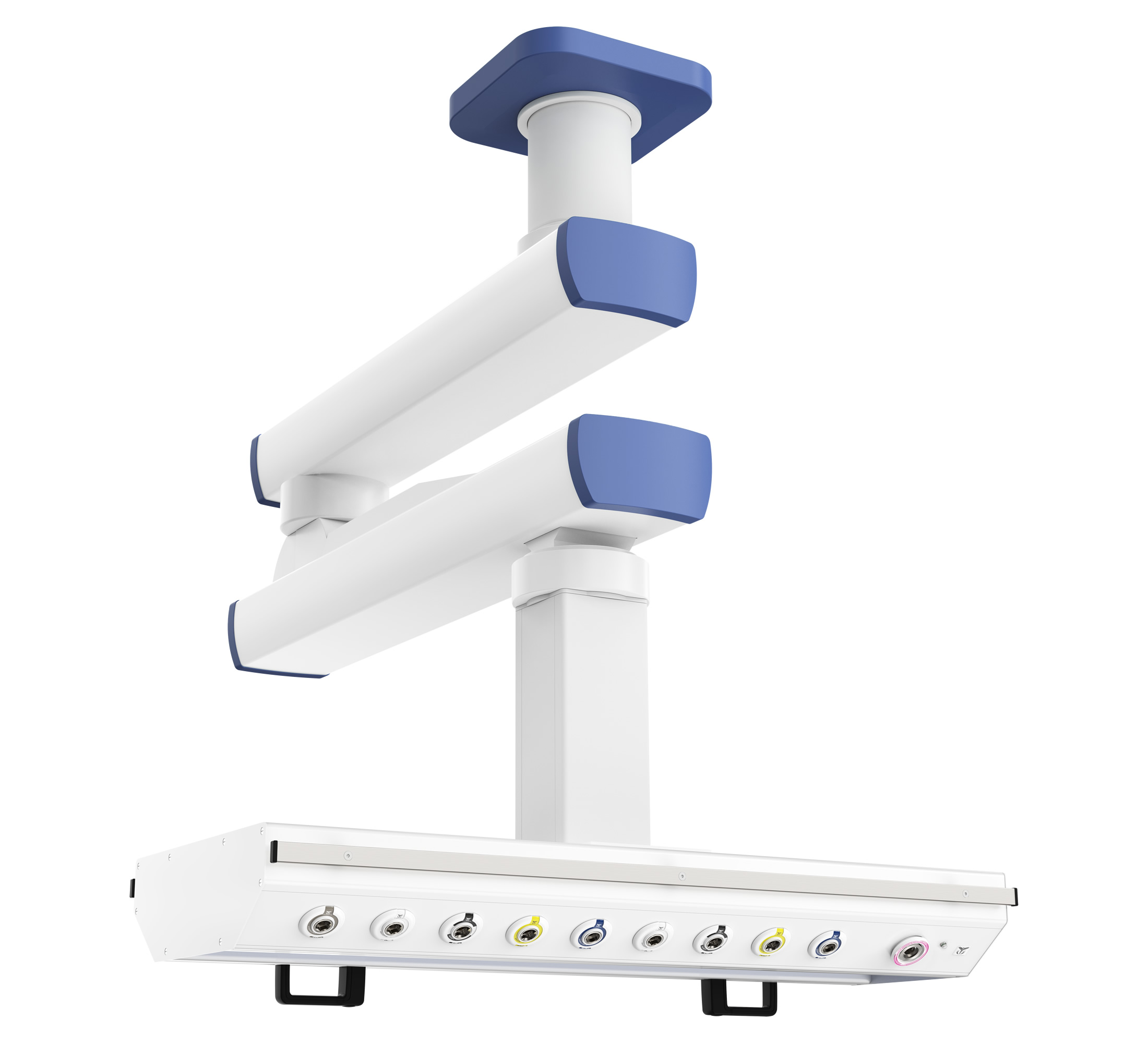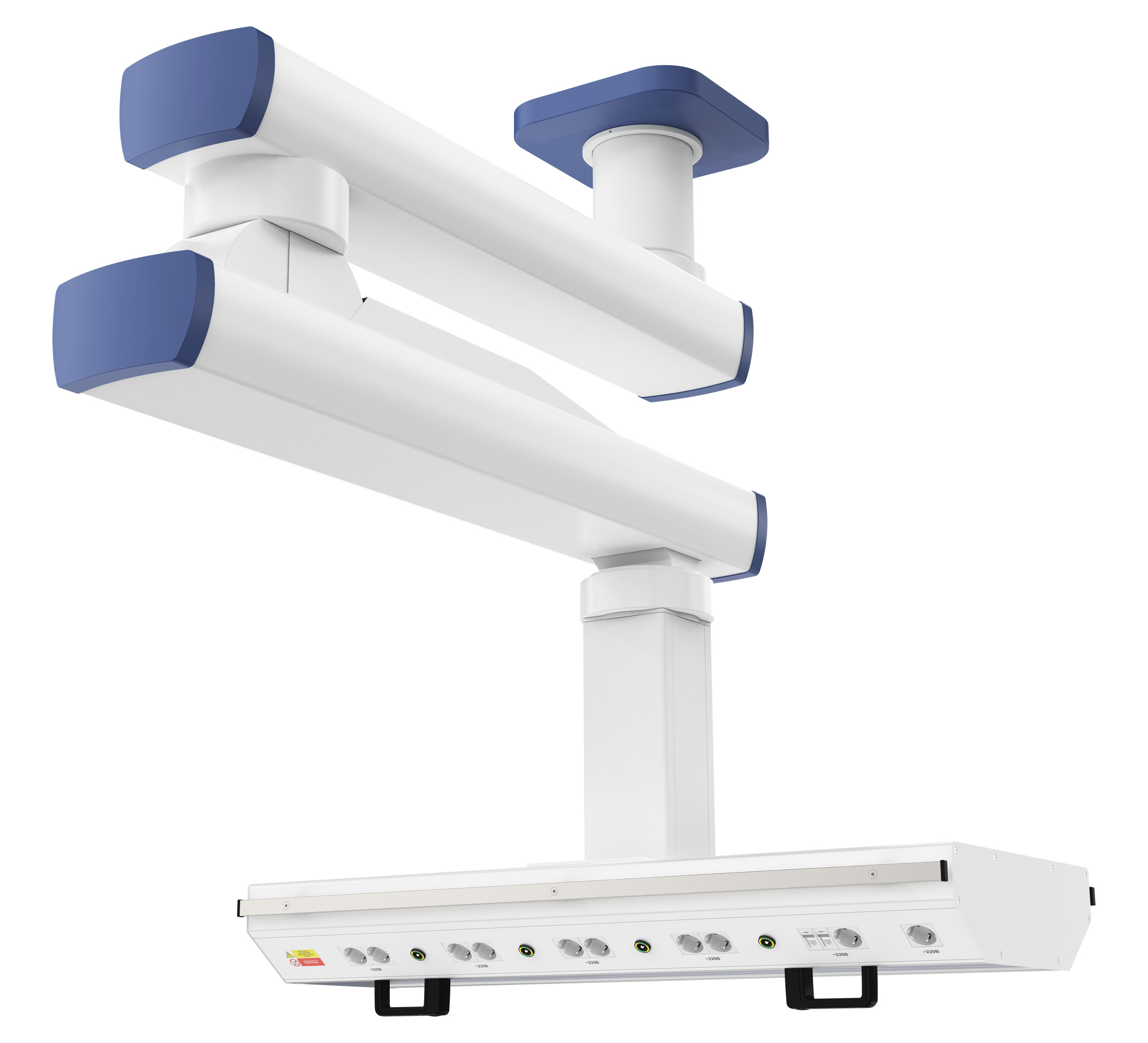 с одним поворотным плечом длиной до 1200 мм, одним поворотно-подъемным плечом длиной 900 мм и вращающимся горизонтальным шкафом источников медгазов и электропитания – идеальное решение для организации функционального и эргономичного рабочего места медицинского персонала в операционных и реанимационных отделениях, родовых залах, а также палатах интенсивной терапии. Мобильность подвесной многофункциональной системы CADUCEUS (Кадуцей) обеспечивает возможность быстрого подключения пациента к системе медицинского газоснабжения и коммутации необходимого медицинского оборудования для проведения оперативных и восстановительных мероприятий. Для крепления дополнительного оборудования шкаф источников медгазов и электропитания оснащается медицинскими рельсами с несущей способностью каждого до 25 кг.