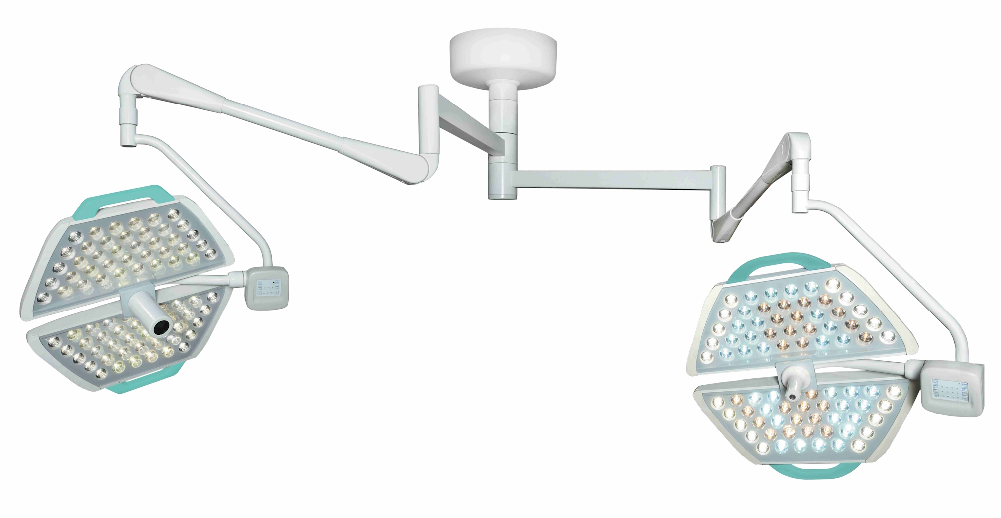 Светильник медицинский хирургический универсальный регулируемый "ПАНАЛЕД" со светодиодными источниками света с принадлежностями по ТУ 9452-004-99630002-2015. Вариант исполнения: Светильник двухблочный с потолочным креплением "ПАНАЛЕД-140/140/ЖКП/HR".