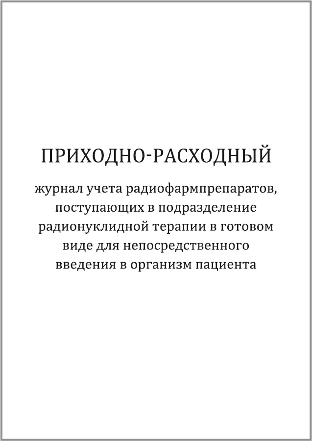 Приходно-расходный журнал учета радиофармпрепаратов, поступающих в подразделение радионуклидной терапии в готовом виде для непосредственного введения в организм пациента 200 страниц мягкая обложка