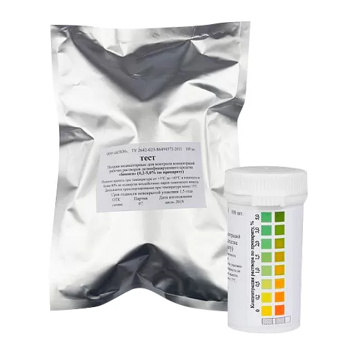 Полоски индикаторные «Тест Приоль» для контроля концентраций рабочих растворов дезинфицирующего средства Приоль (0,1-2,0% по препарату).
