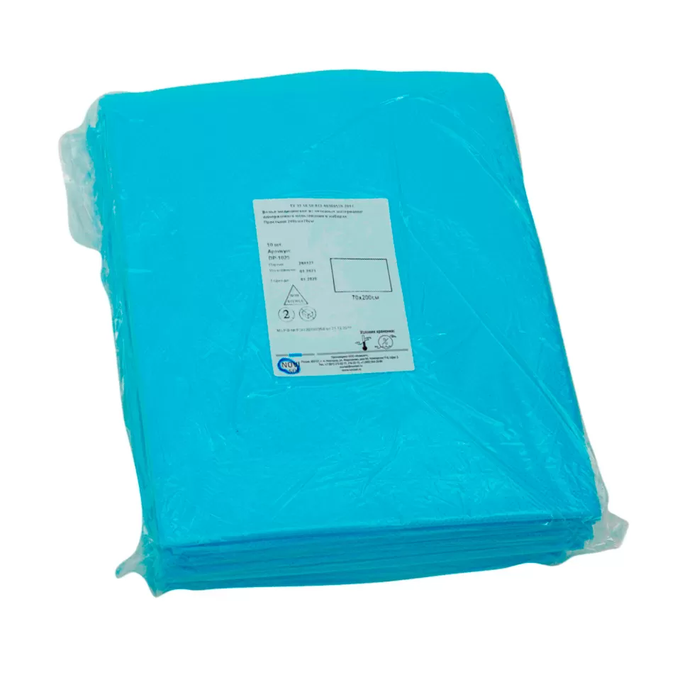 - Простыни изготовлены из двухслойного непромокаемого нетканого материала, непроницаемого для жидкостей и бактерий типа "спанбонд".