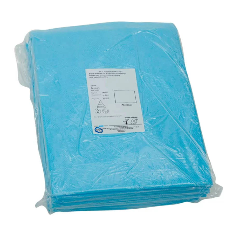 Простыня изготовлена из нетканого материала типа "спанбонд" (состав: 100% полипропилен).