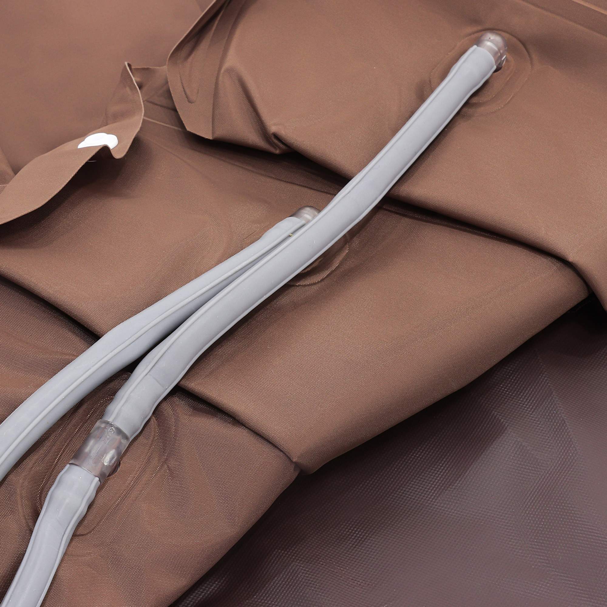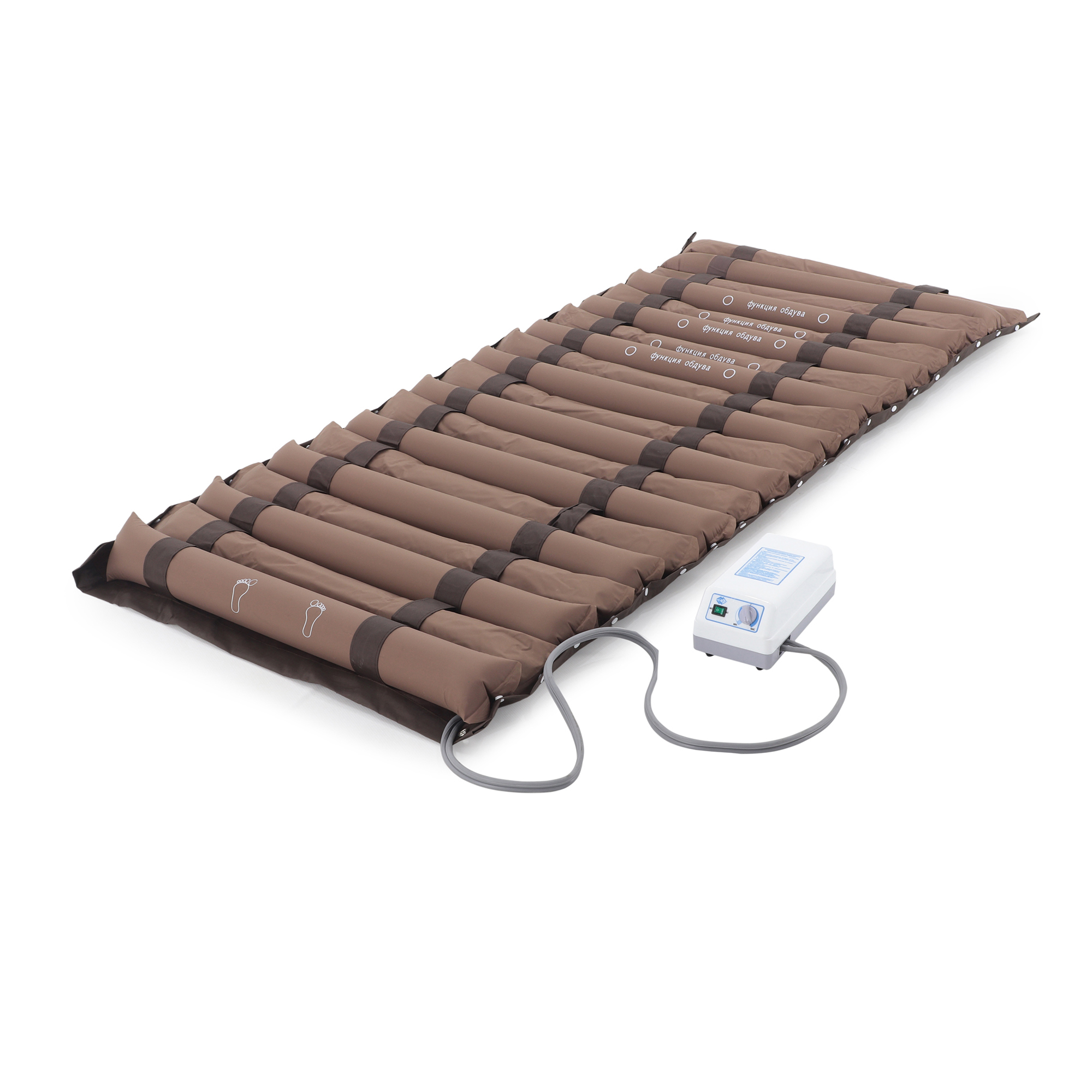 Противопролежневый матрас MED-MOS DL02-I представляет собой инновационное медицинское изделие, разработанное для комплексной профилактики и лечения пролежней у пациентов с ограниченной подвижностью. Коричневый цвет матраса придает ему более эстетичный и практичный вид, маскируя возможные незначительные загрязнения. Основной принцип работы устройства основан на динамическом распределении давления за счет попеременного нагнетания воздуха в два независимых контура, состоящих из 20 трубок. Это создает эффект постоянного мягкого массажа, который стимулирует кровообращение в тканях, подверженных наибольшему давлению, и предотвращает их некроз.