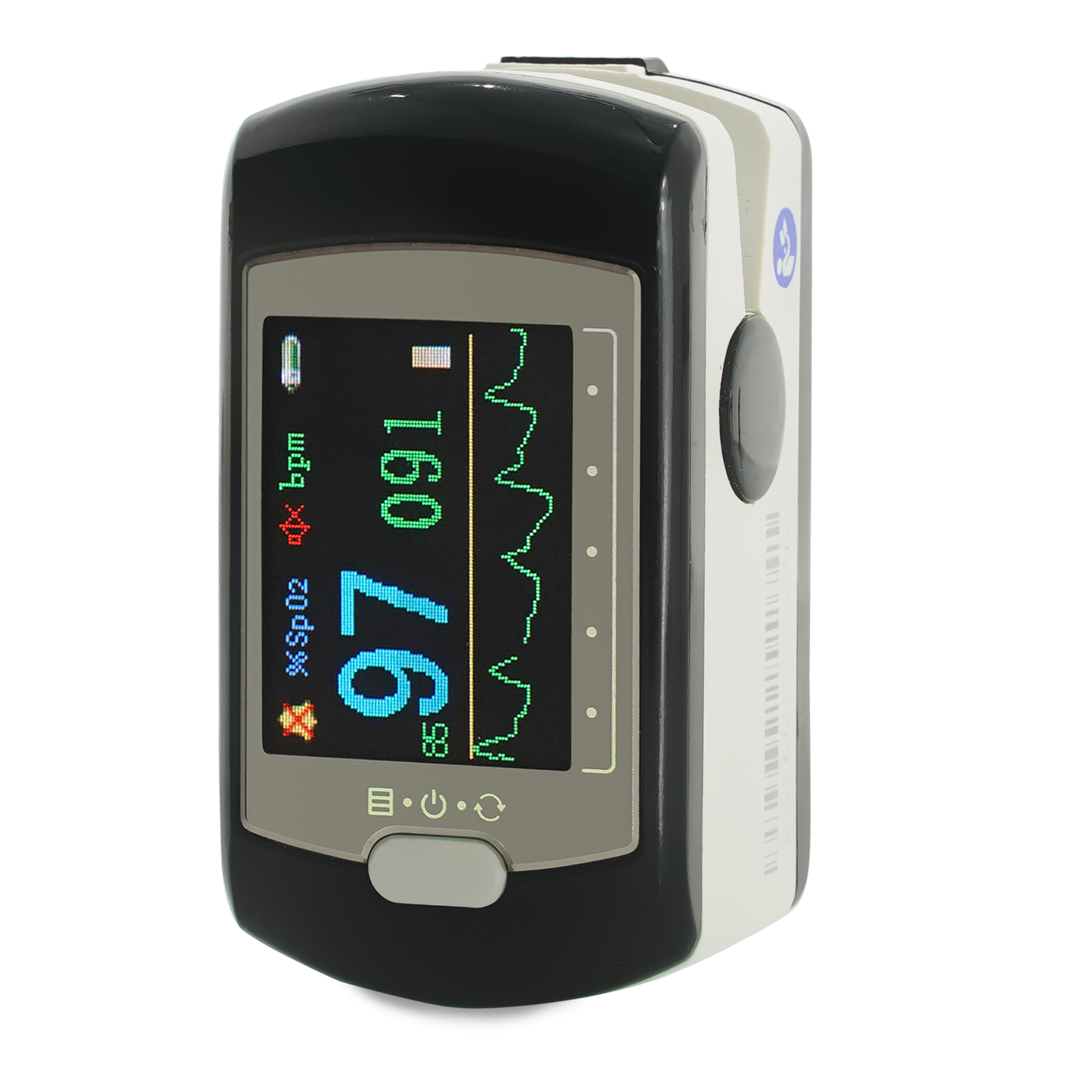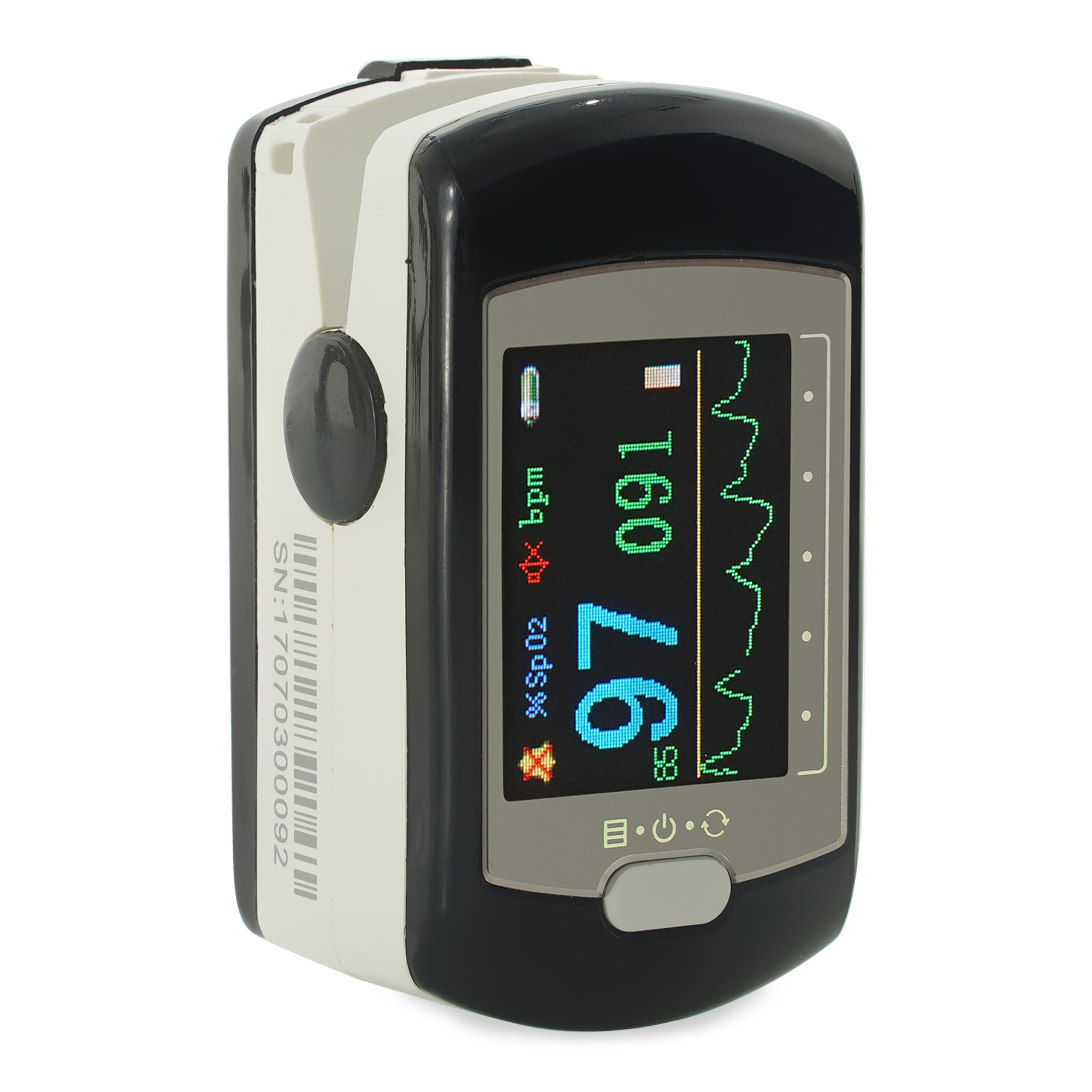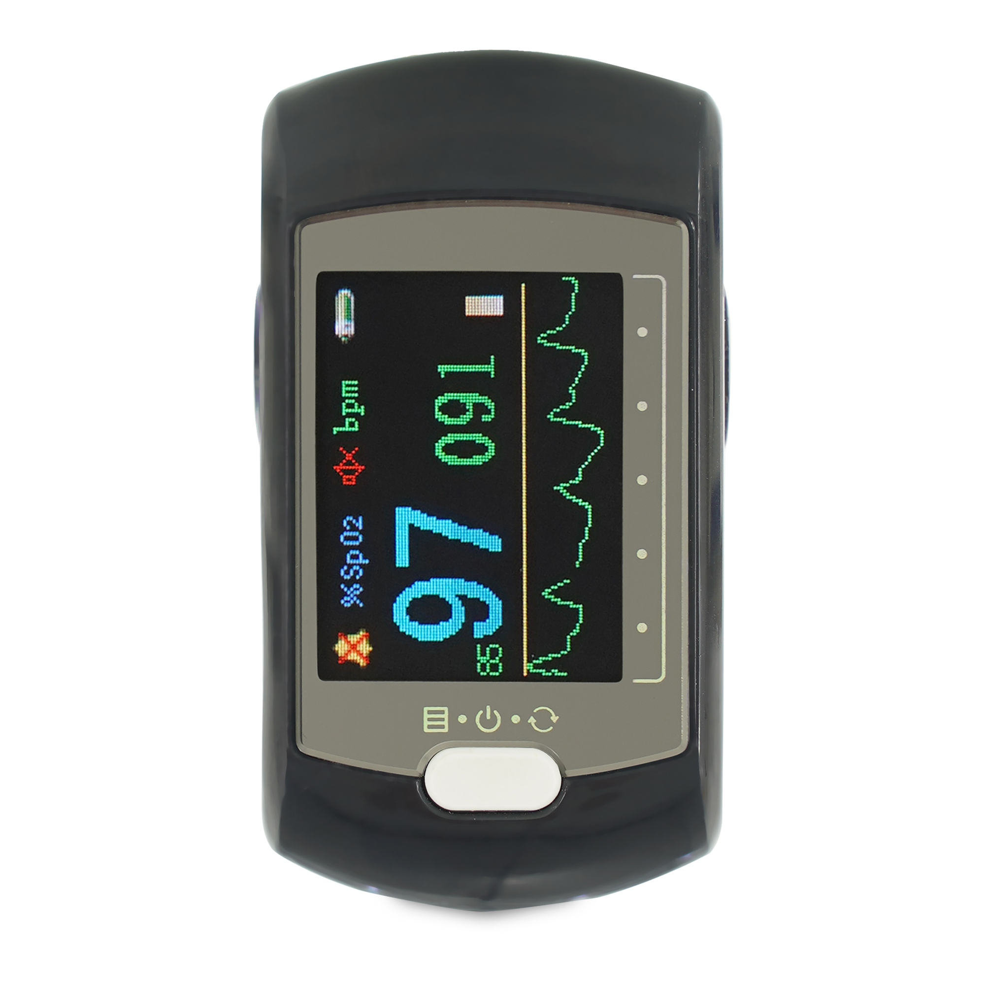Компактный напалечный пульсоксиметр профессионального класса для точного измерения уровня кислорода в крови (сатурации) и частоты сердечных сокращений. Отличается современным OLED-дисплеем и расширенным функционалом для медицинского применения.