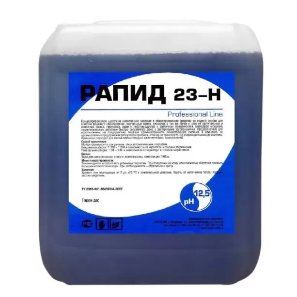 Сильно концентрированное щелочное низкопенное моющее и обезжиривающее средство на водной основе для очистки пищевого оборудования, коптильных камер, емкостей, а так же полов и стен от растительных и животных жиров, протеинов, сажи и нефтепродуктов с различных поверхностей. Благодаря мощному эмульгирующему действию быстро справляется даже с застарелыми загрязнениями. Предназначено для использования на предприятиях пищевой промышленности, общественного питания, в клининге, на промышленных предприятиях различного профиля, а так же на транспорте. Не повреждает моющие системы. Прекрасно подходит для мытья любых твердых щелочестойких поверхностей.