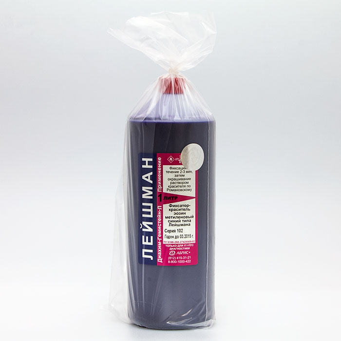 Фиксатор-краситель представляет собой раствор сухого красителя эозин метиленовый синий типа Лейшмана в метаноле, 1 л – 1 фл.