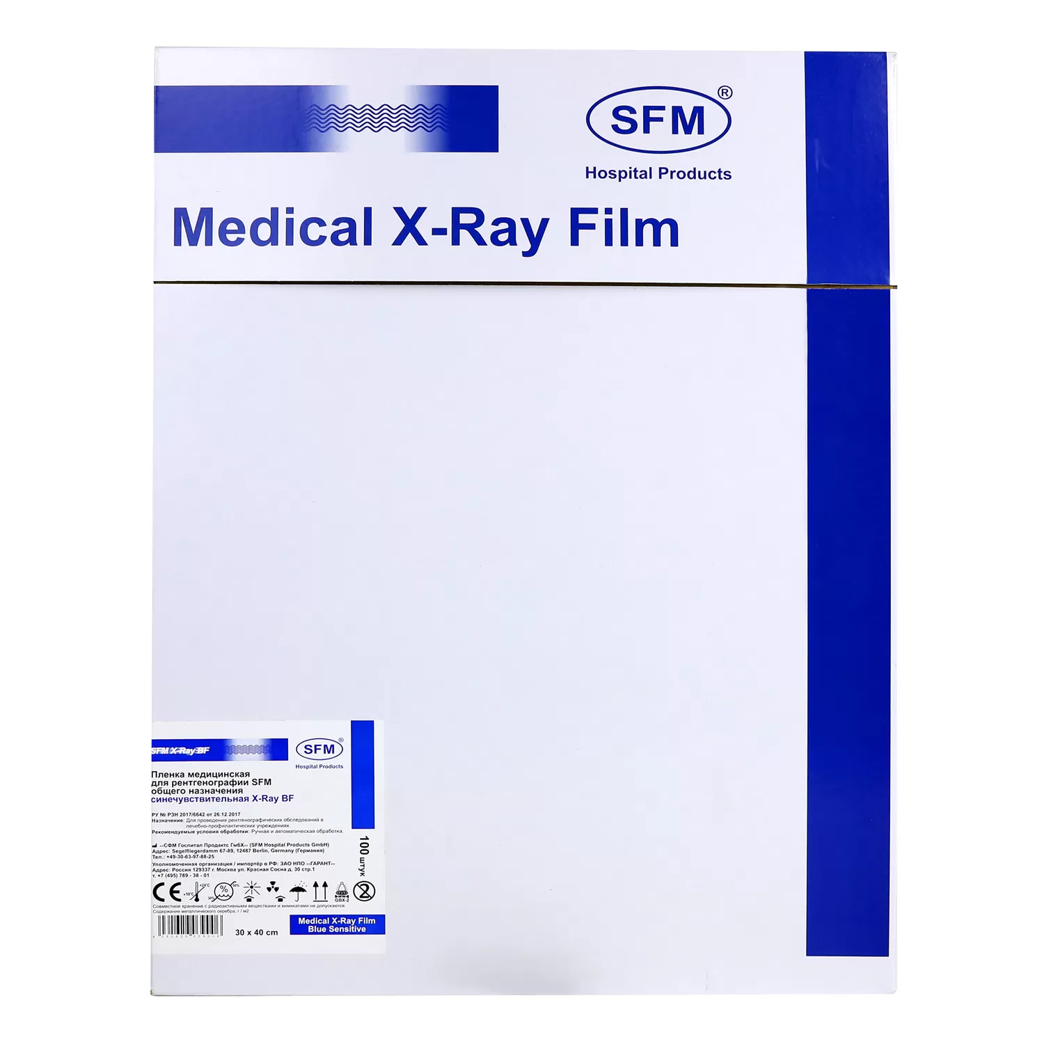 - Синечувствительная медицинская ретгенографическая плёнка SFM X-ray BF прездназначена для использования с недорогими экранами SFM класса 200 или аналогичными. Также данную плёнку можно применять с синеизлучающими и УФ-экранами других производителей.