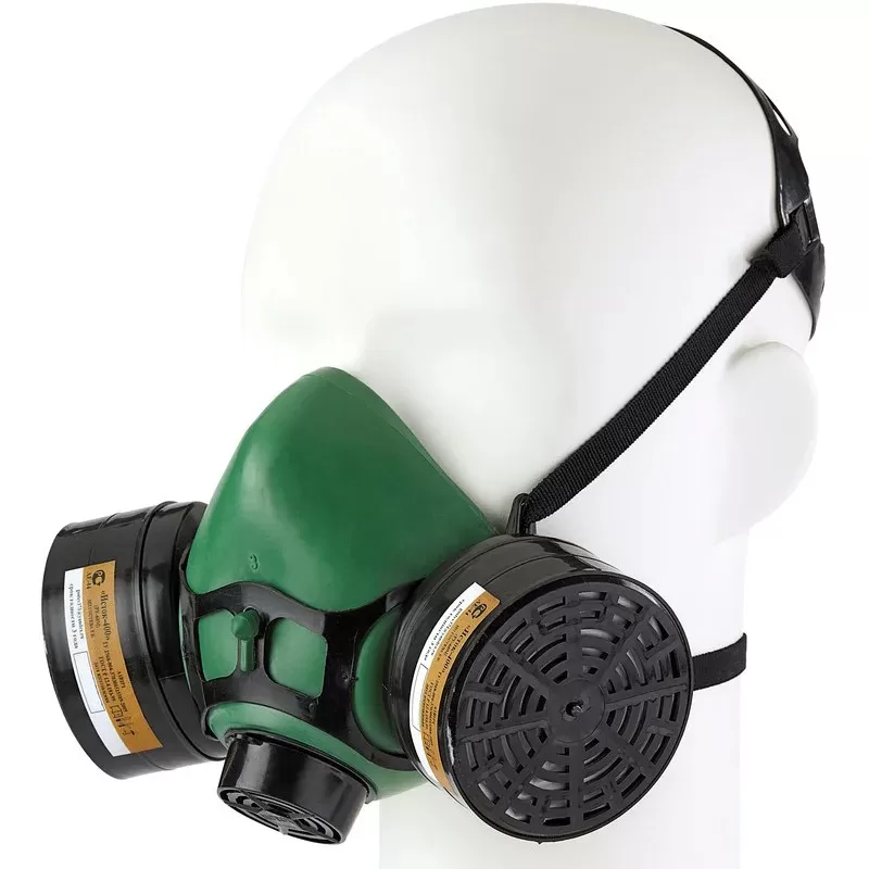 Изолирующая полумаска с двумя сменными противогазовыми фильтрами.