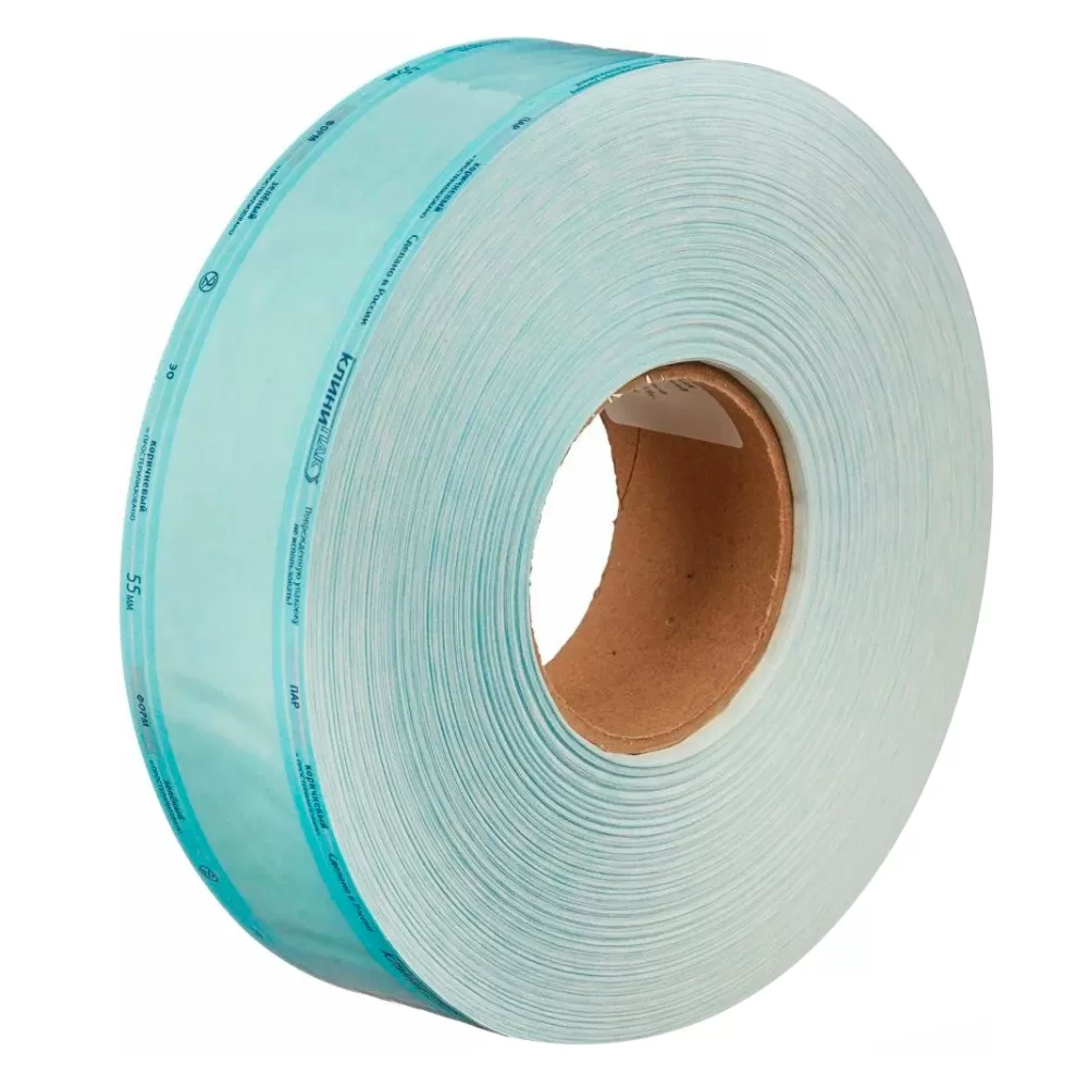 Плоские рулоны являются комбинированной упаковкой, состоящей из семислойной полимерной пленки бледно-голубого цвета и специальной водооталкивающей медицинской бумаги белого цвета (непрозрачная сторона) плотоностью 60 и 70 г/м2, соединенных между собой термошвом. На бумажной стороне нанесены: торговая марка, размер, производственная кодировка и цветные химические индикаторы стерилизации.
