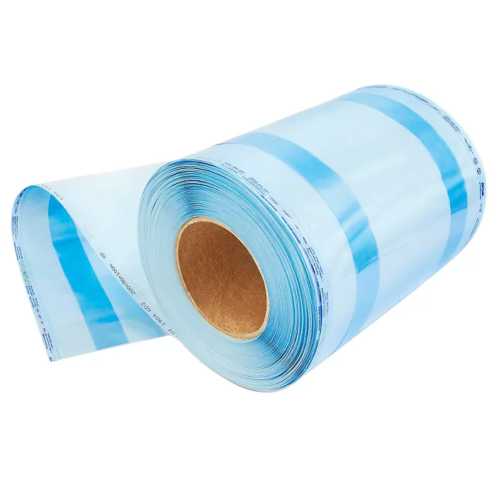 Рулоны со складкой для стерилизации водяным паром (STEAM), оксидом этилена (EO) и формальдегидом (FORM). Изделия со складкой используются для упаковки объемных предметов или предметов с нестандартными размерами. Химические индикаторы процесса стерилизации напечатаны на бумаге в области сварочного шва со стороны пленки вне области загрузки пакета.