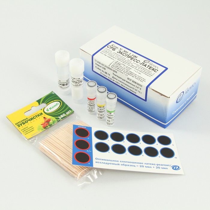 Набор реагентов для качественного и полуколичественного экспресс-определения содержания С-реактивного белка в сыворотке крови методом латекс-агглютинации.