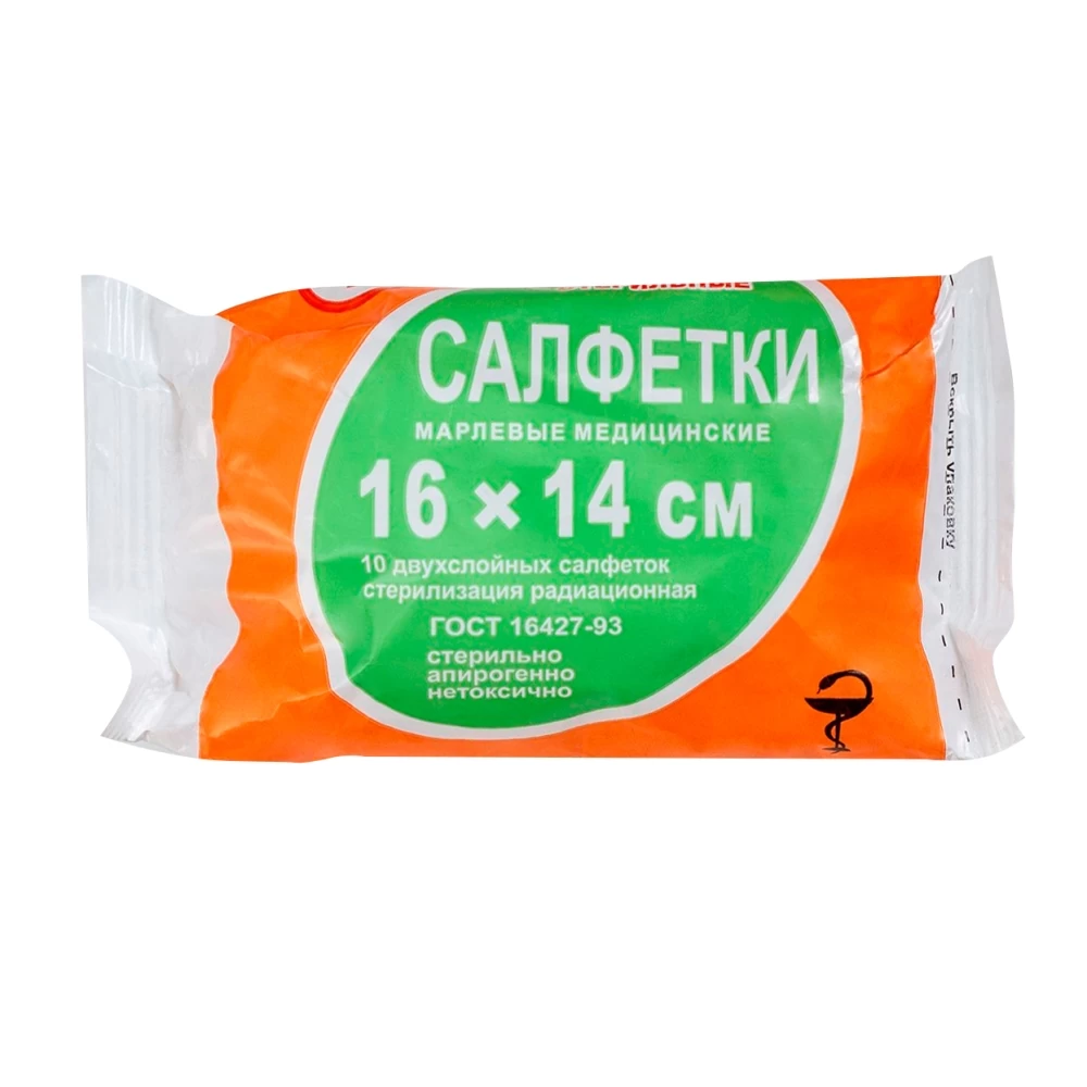 - Салфетка марлевая медицинская стерильная 16х14 см используется в медицине для остановки кровотечения, осушения ран, дренажа, при хирургических операциях, где важна стерильность, для изготовления тампонов, защиты поврежденного кожного покрова от неблагоприятного воздействия окружающей среды (могут дополнительно фиксироваться другим перевязочным материалом).