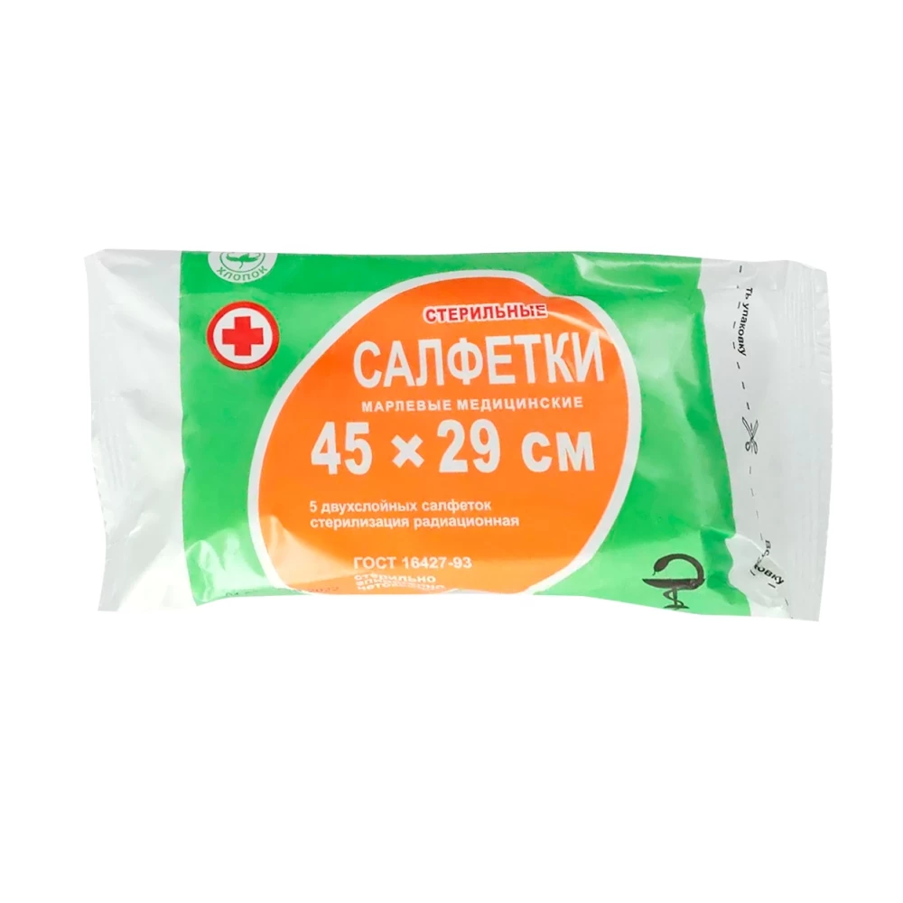 - Салфетки марлевые — готовые операционно-перевязочные медицинские двухслойные средства, прошедшие стерилизацию.