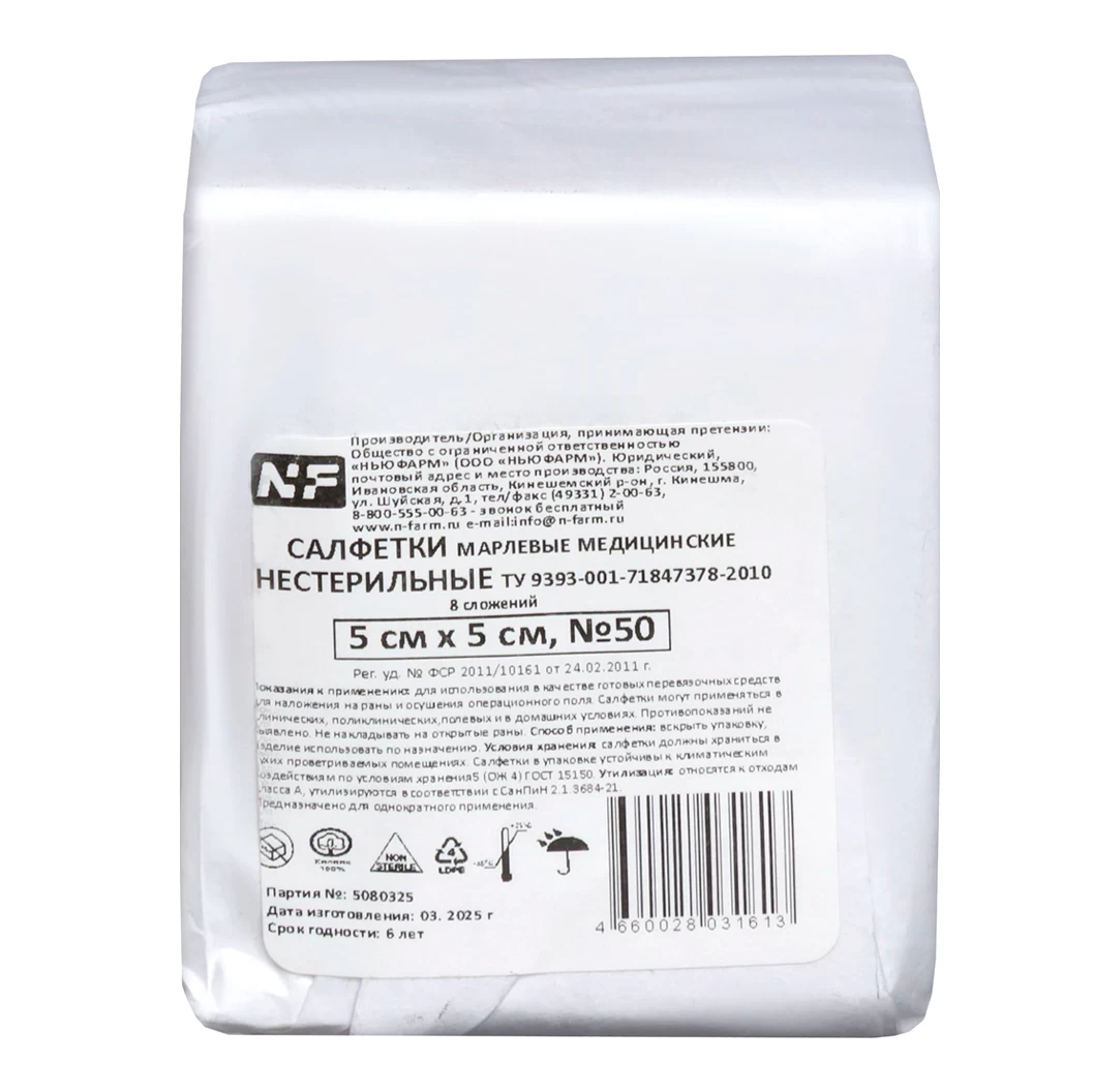 - Салфетки изготовлены из высококачественной отбеленной хлопчатобумажной медицинской марли.