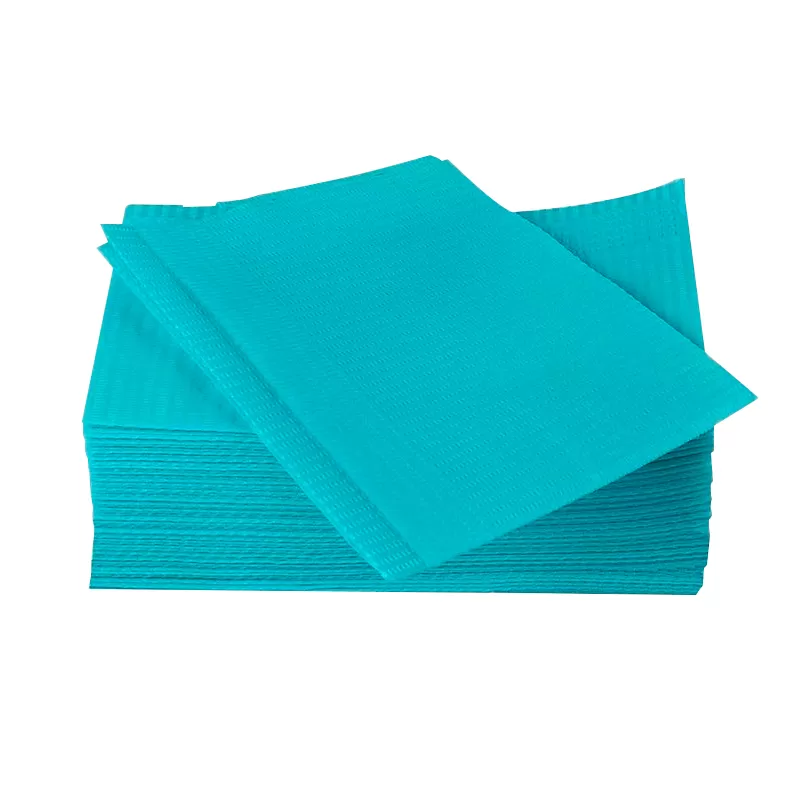 - Салфетки нагрудные или салфетки процедурные сделаны из одного слоя сверхабсорбирующей 100% целлюлозной бумаги-основы с плотностью 18 г/м. кв. и одного слоя тонкой, прочной полиэтиленовой пленки.
