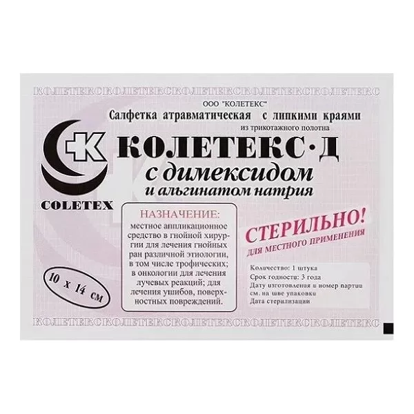 «Колетекс-Д с димексидом» – местное противовоспалительное средство. Ускоряет процесс заживления.