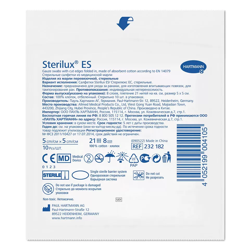 - Изготовлены из впитывающей хлопчатобумажной марли в соответствии со стандартом EN 14079, 17 нитей, сложенные, с подвернутыми краями;