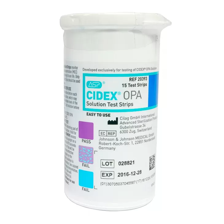 - Чтобы раствор Сайдекс ОПА эффективно уничтожал микроорганизмы, необходимо с помощью тестовой полоски CIDEX OPA Test Strip перед каждым использованием протестировать наличие в растворе минимальной эффективной концентрации (МЭК), необходимой для дезинфекции высокого уровня.