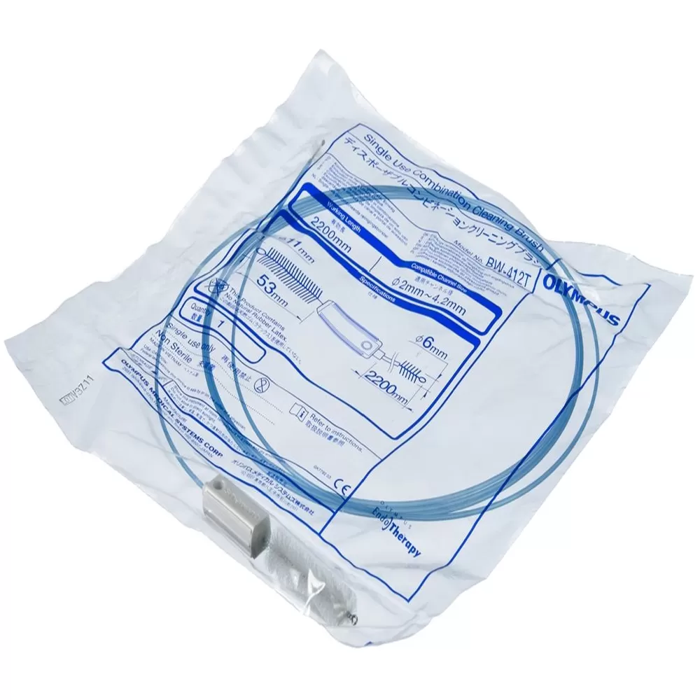 Cоставная, предназначенная для одноразового использования, очищающая щетка Olympus, имеющая в себе щетку для чистки каналов и щетку для устья канала в одной оболочке.