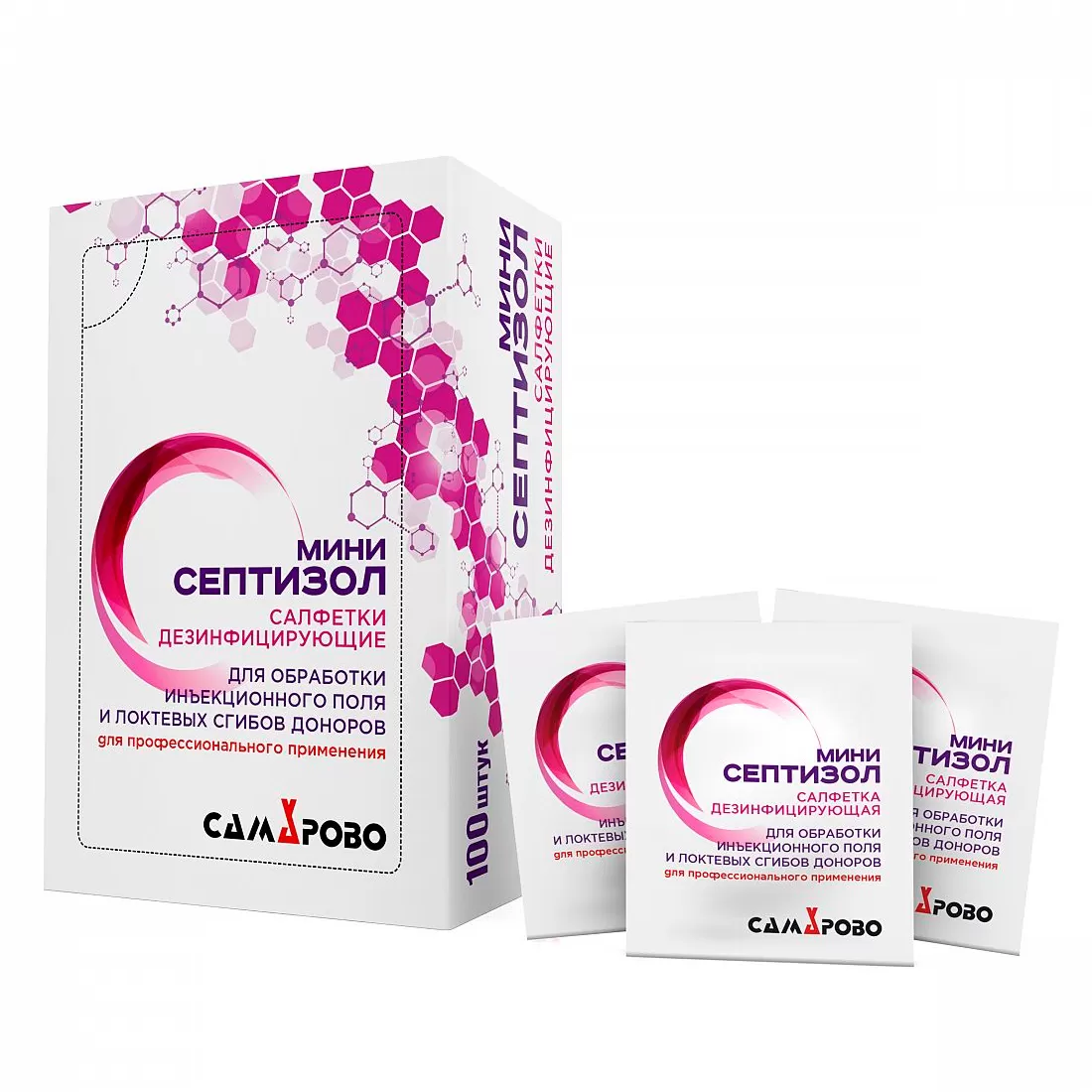 - салфетки размером 60х70 мм, в упаковке 100 шт.