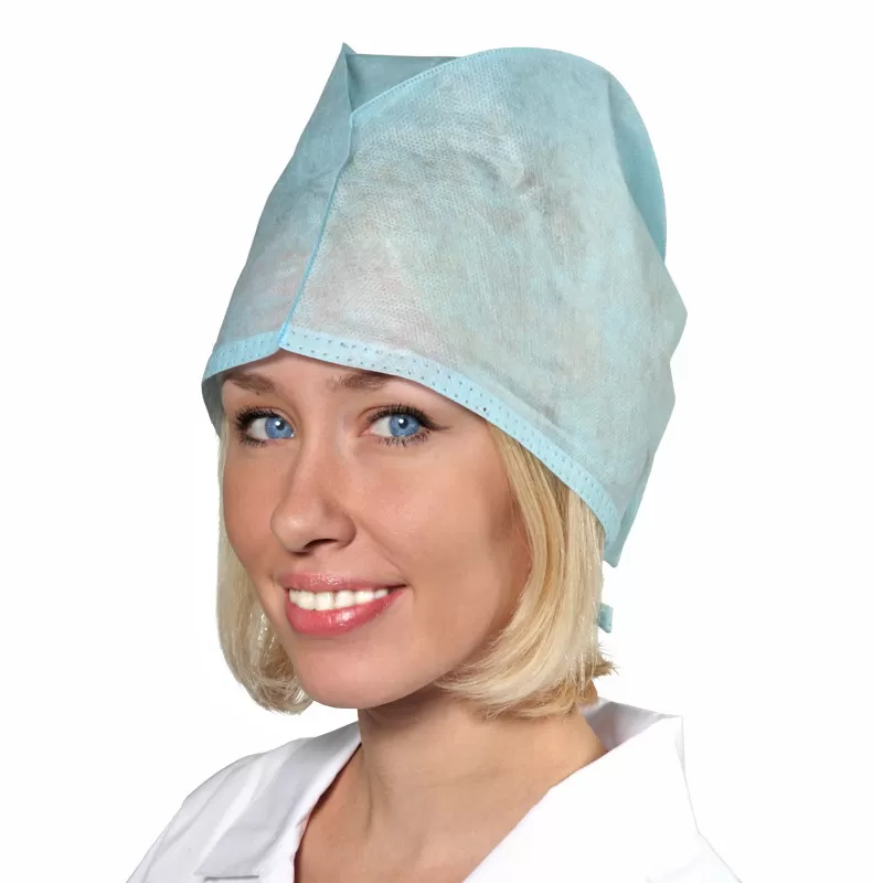 Медицинская шапочка-колпак одноразовая из первичного нетканого полипропилена выдувного способа производства.