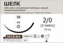 Шелк плетеный черный 3/0 75 см игла колющая 25 мм 25 шт