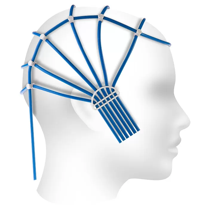 Шлем предназначен для регистрации ЭЭГ с помощью чашечковых электродов.