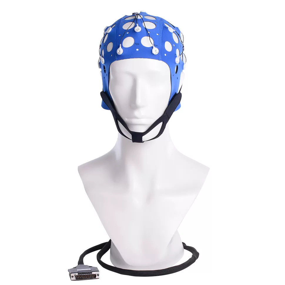 - Электродный шлем CLINIC_TC – это текстильный шлем с предустановленными Ag/AgCl электродами MCScap_C и общим разъемом DB_25M.