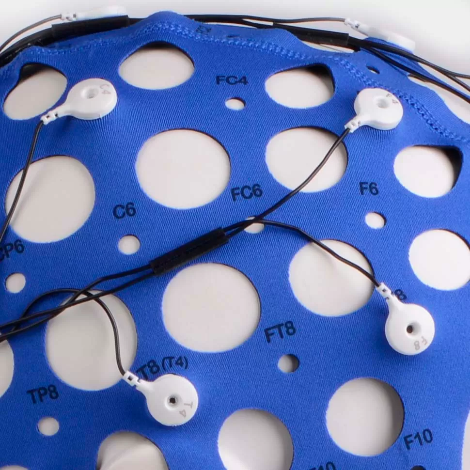 - Текстильный шлем изготовлен из эластичного материала, сохраняющего форму и размер. Шлем обеспечивает точное положение электродов на голове без дополнительных измерений и регулировки. Большие отверстия предусмотрены для вентиляции и обеспечения доступа к электродам и коже пациента. Шлем фиксируется на голове с помощью подбородника или нагрудного ремня. Шлемы имеют маркировку согласно системе 10_10. Идентификация размера осуществляется по цвету шлема.