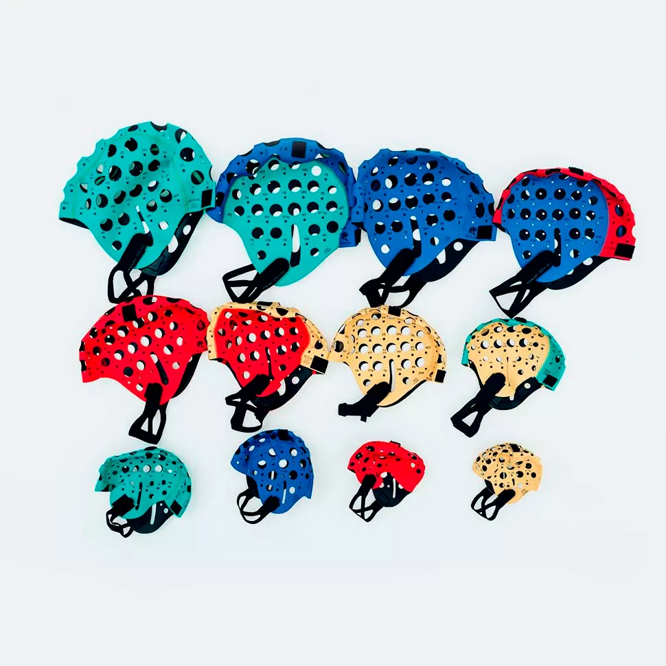 - Большие отверстия предусмотрены для вентиляции и обеспечения доступа к электродам и коже пациента. Шлем фиксируется на голове с помощью подбородника или нагрудного ремня.