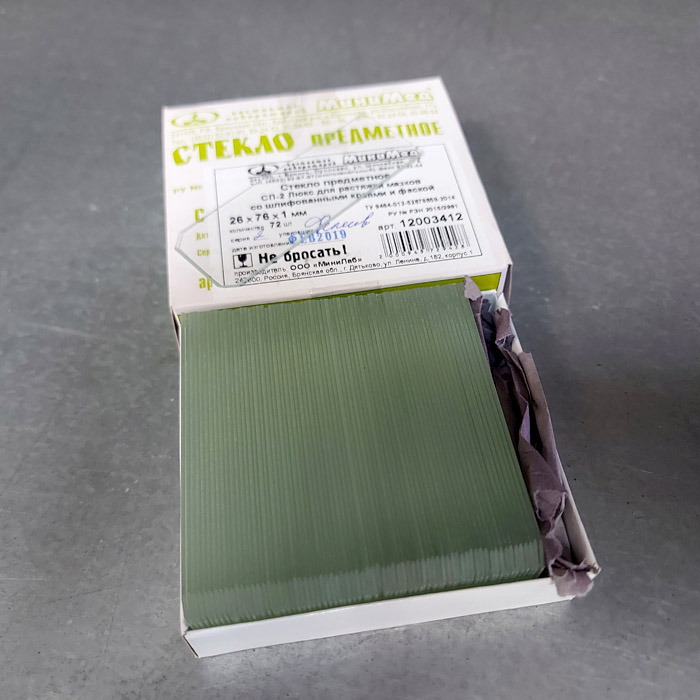 Предметное стекло для микропрепаратов со шлифованными краями и фаской предназначено для растяжки мазков. Изготовлено из прозрачного бесцветного силикатного стекла. В упаковке 72 шт.