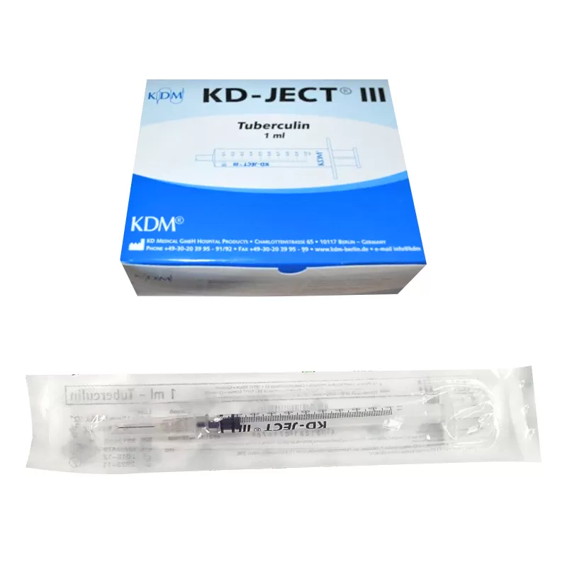 Шприц КДМ KD-Ject III 1 мл (туберкулиновый). Цилиндр объёмом 1 мл предназначен для небольших доз препаратов, маленькая игла обеспечивает максимально безболезненное проникновение под кожный покров. Модель оснащена резиновым уплотнителем на конце цилиндра для обеспечения герметичности и плавного нажатия.