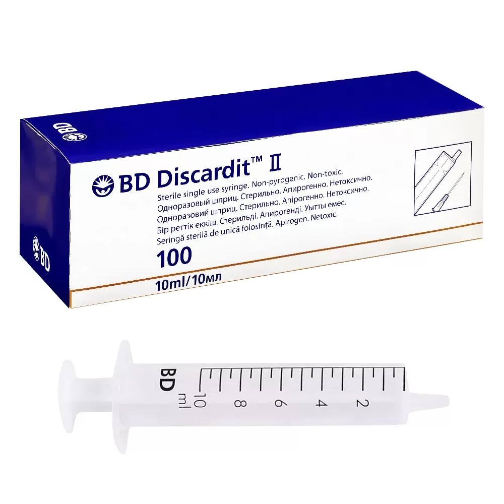 Шприц для одноразового (индивидуального) использования. Сила скольжения поршня уменьшена до 300 г/см, что обеспечивает плавное, без рывков, введение лекарств и легкую остановку поршня.