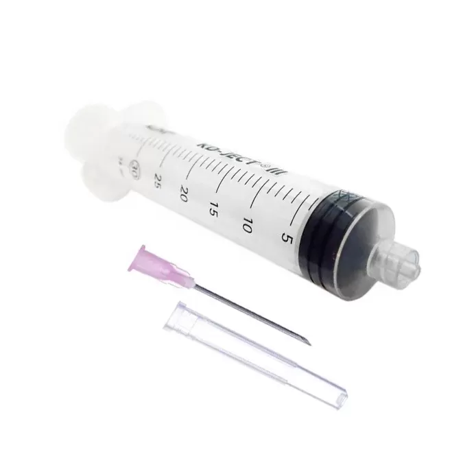 - Шприц трёхкомпонентный (трёхсоставной, с уплотнителем на поршне).