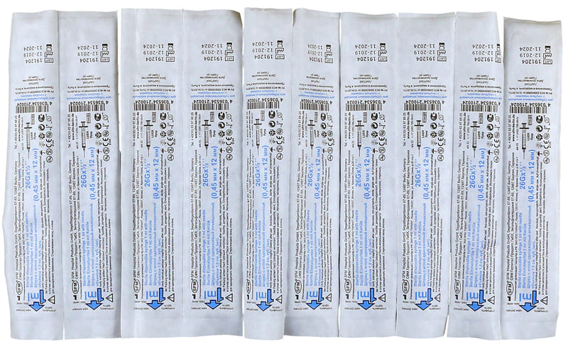 Игла: 26G (0,45 ⨯ 12 мм), съёмная, крепление Luer.