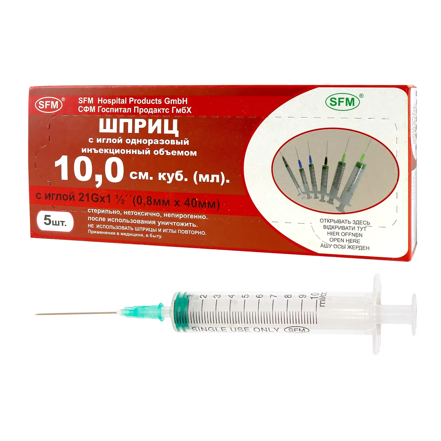 Шприцы трехкомпонентные одноразовые в аптечных упаковках от 2 до 10 мл изготовлены с коаксиальным (по центру) расположением крепления иглы, шприц 20 мл поставляется с креплением сбоку.