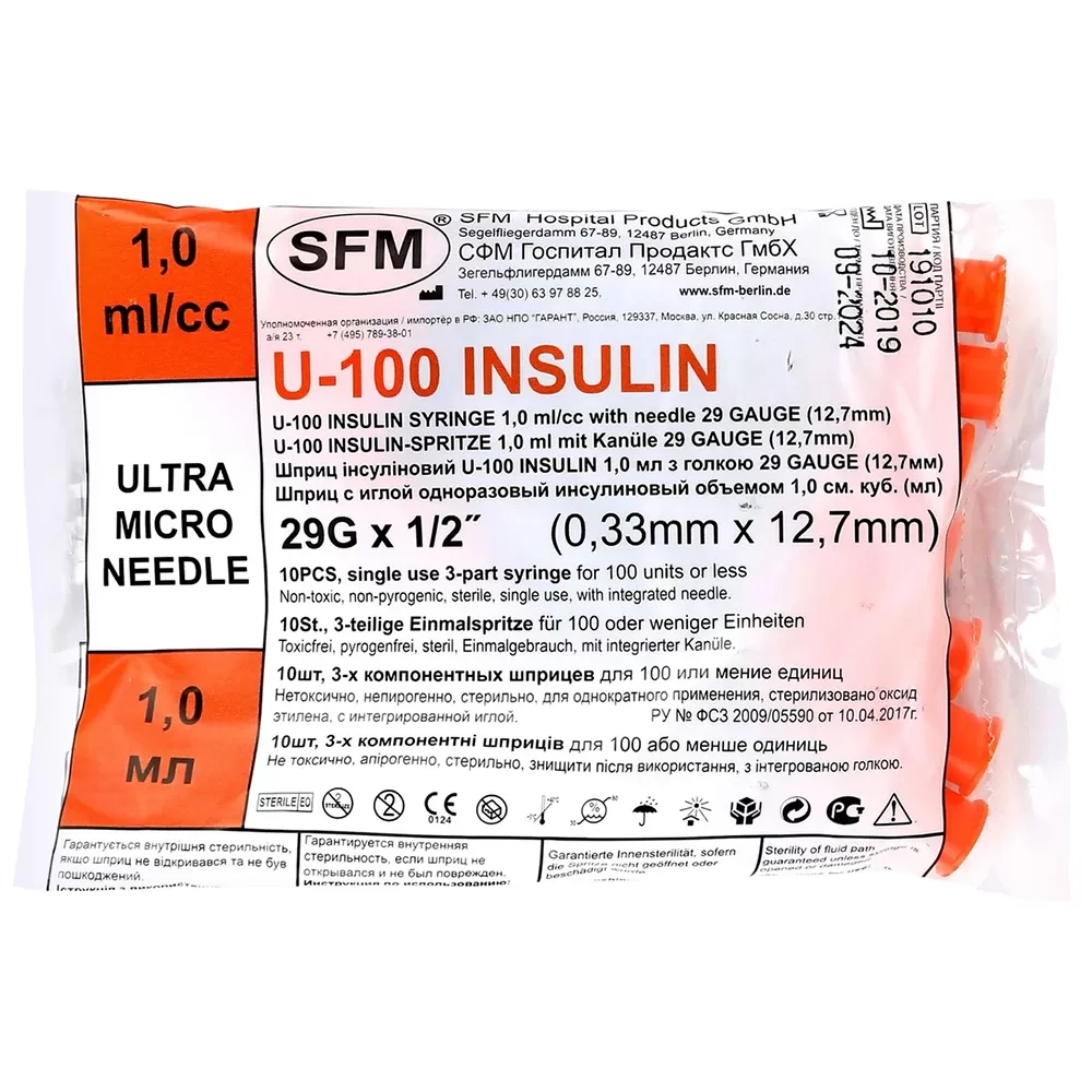 Шприц одноразовый инсулиновый U-100 с несъемной иглой.