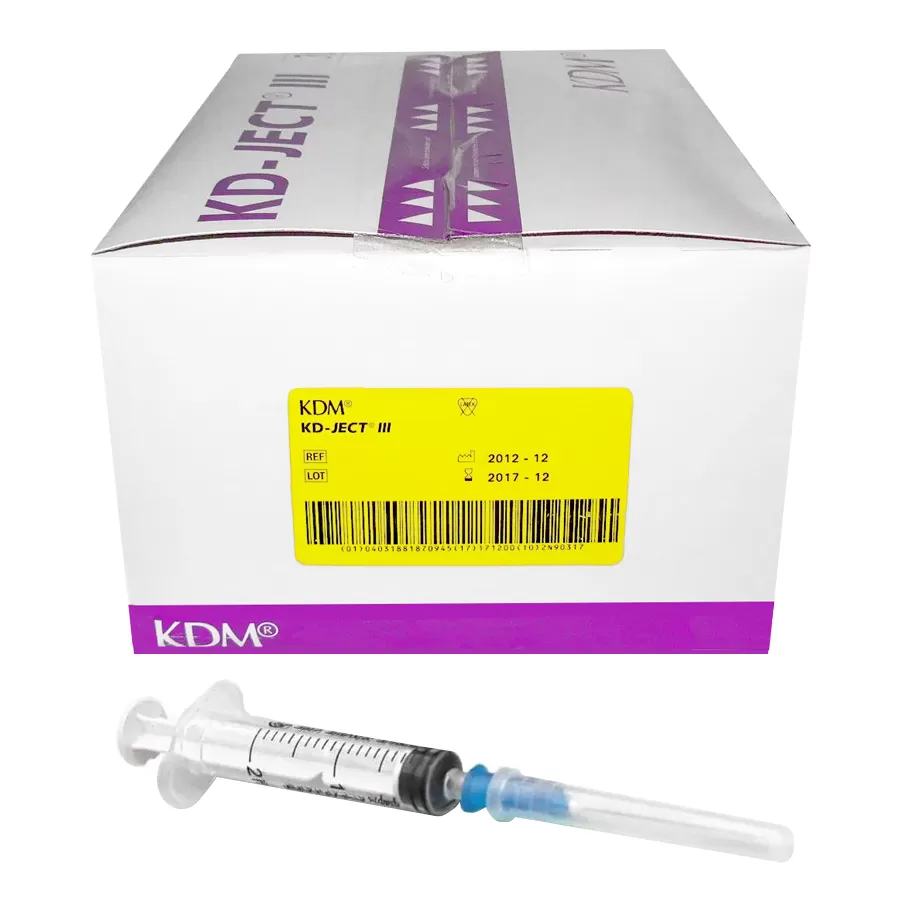 KD-JECT (КД Джект) III- одноразовые трехкомпонентные инъекционные шприцы 2, 3, 5, 10 и 20 мл (игла упакована рядом со шприцем).
