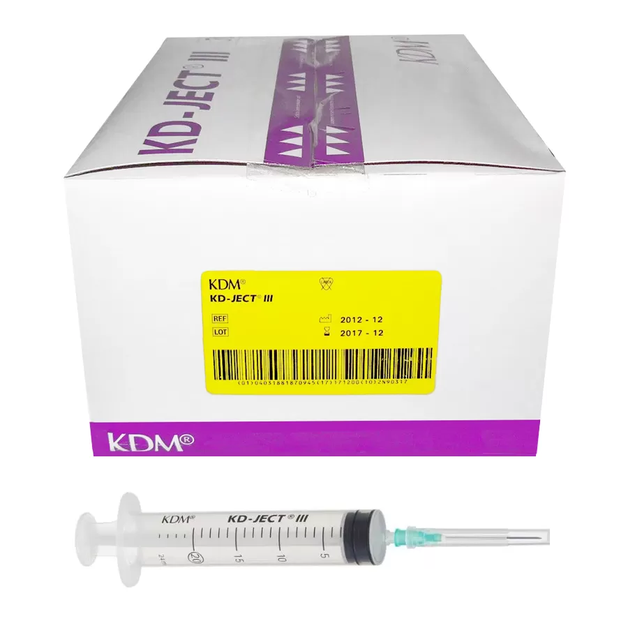 KD-JECT (КД Джект) III- одноразовые трехкомпонентные инъекционные шприцы 2, 3, 5, 10 и 20 мл (игла упакована рядом со шприцем).