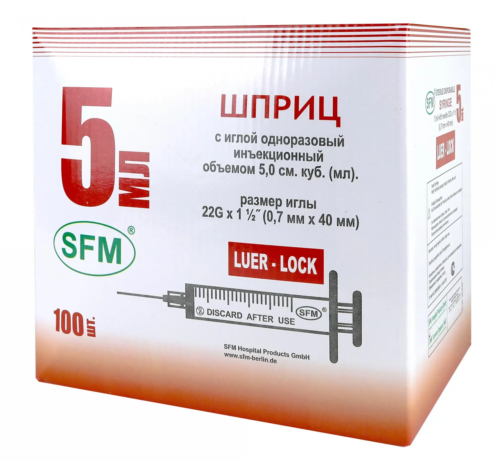 Шприц 5 мл Luer трёхкомпонентный с надетой иглой.