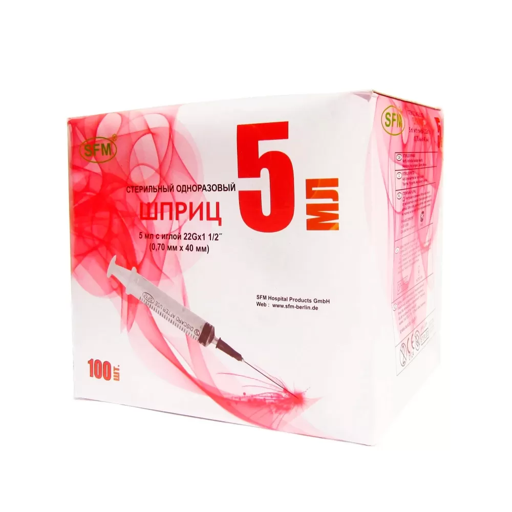 Шприц 5 мл трёхкомпонентный с надетой иглой.