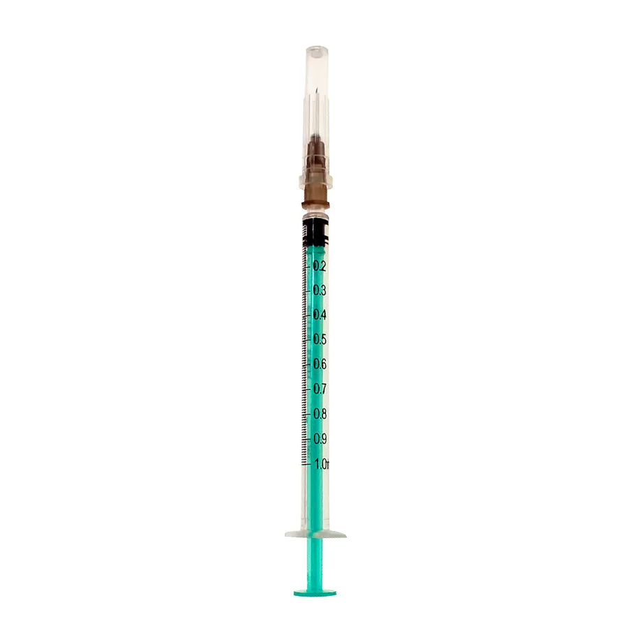 - Трехкомпонентный шприц 1 мл, для инъекций туберкулина, индивидуально упакован в блистер, игла надета на шприц.