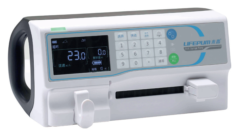 Насос шприцевой FA513 предназначен для высокоточного (по дозировке и скорости инфузии) длительного введения лекарственных или физиологических растворов в клинических условиях. Устройство имеет электросетевой привод с возможностью резервного питания от внутренней аккумуляторной батареи.