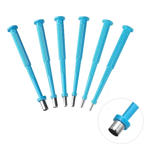 Ручное устройство-перфоратор для получения гистологического образца кожи. Оснащено безупречной стальной бритвой с острой кромкой, ребристой рукоятью для надежного удержания и контроля с маркировкой диаметра панча. Инструмент одноразовый, стерильный.