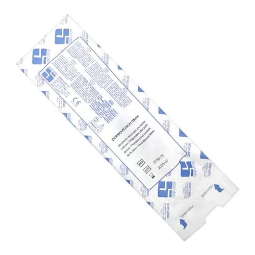 Ручное устройство-перфоратор для получения гистологического образца кожи. Оснащено безупречной стальной бритвой с острой кромкой, ребристой рукоятью для надежного удержания и контроля с маркировкой диаметра панча. Инструмент одноразовый, стерильный.