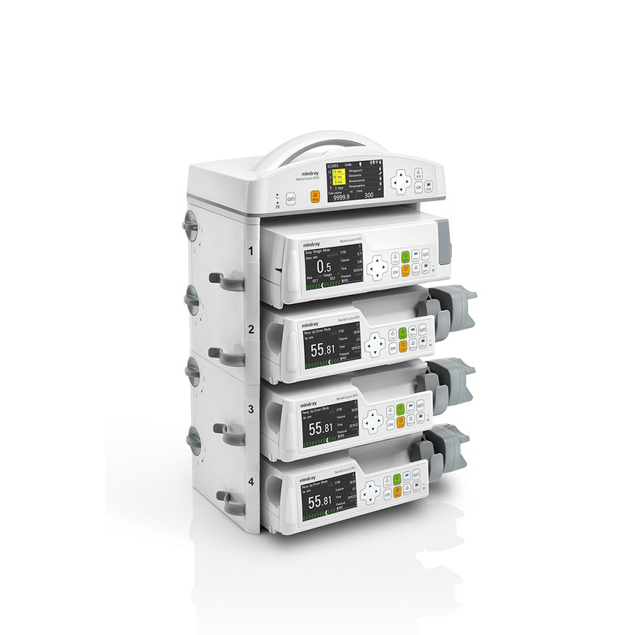 <p>Mindray BeneFusion DS5 – прикроватная станция, объединяющая от 2 до 12 инфузионных и шприцевых насосов. Насосы легко устанавливаются в слоты вручную, без дополнительных инструментов. Достаточно вставить их до щелчка, и они будут подключены как к источнику питания, так и к обмену данными. </p>