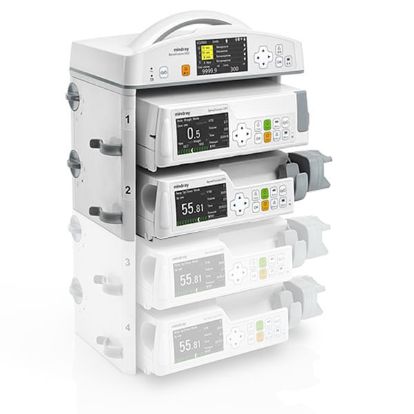 <p>Mindray BeneFusion DS5 – прикроватная станция, объединяющая от 2 до 12 инфузионных и шприцевых насосов. Насосы легко устанавливаются в слоты вручную, без дополнительных инструментов. </p>