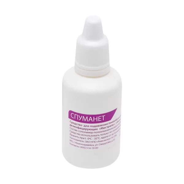 - 3 капли средства "СПУМАНЕТ" добавляют к 1 л рабочего раствора одного из вышеуказанных дезинфицирующих средств.