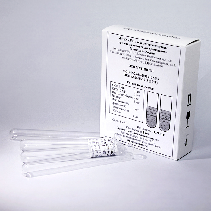 Стандартный образец мутности бактериальных взвесей в комплекте 5МЕ, 10МЕ. Предназначен для определения мутности бактериальных взвесей методом визуального сравнения.