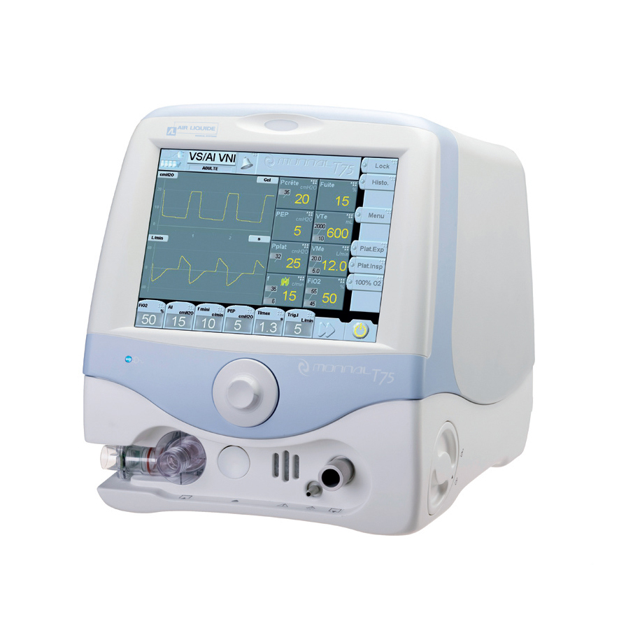 Monnal T75 – один из представителей нового поколения вентиляторов для отделений реанимации и интенсивной терапии. Он поддерживает как инвазивную, так и неинвазивную вентиляцию взрослых пациентов и детей.